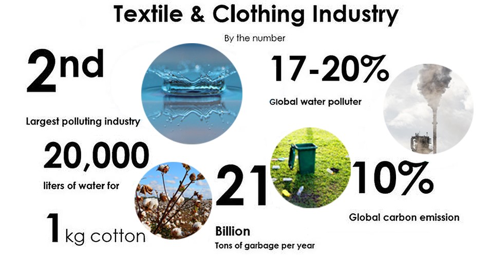 Tekstilindustrien er en av de mest forurensende industrien i verden. Tekstilproduksjon bruker 10 % av global energi og genererer 30 % av alt industriavfall. Tekstilers miljøpåvirkning er enorm, og de må håndteres for å nå målene for bærekraftig utvikling satt av FNs 2030-agenda for bærekraftig utvikling.